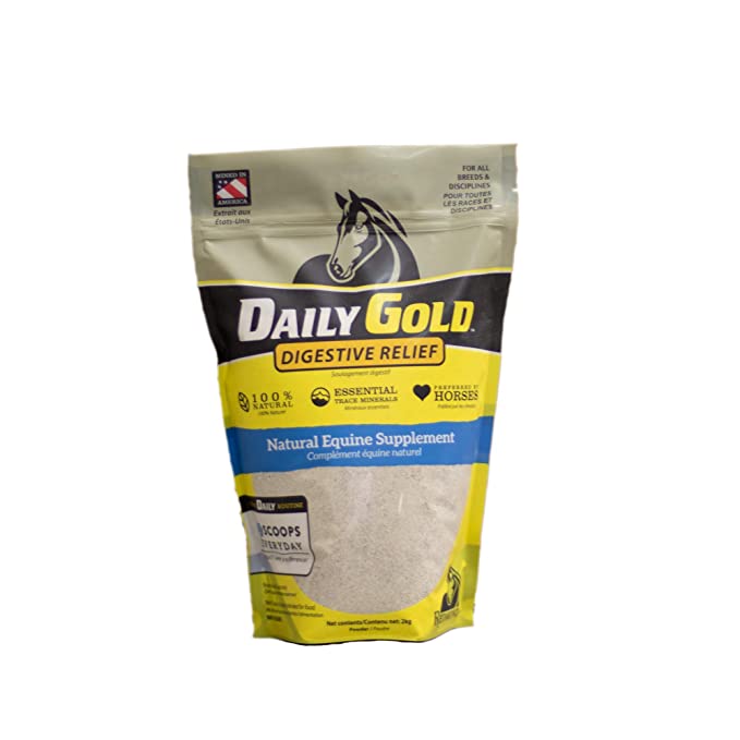 Daily Gold is 95% efficient at binding aflatoxins and T-2 toxins in feed and carrying them out of your horse’s system.