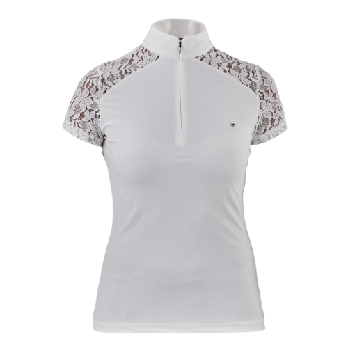 Designed for a professional look, the elegant Ambel show shirt offers excellent technical performance to keep the rider comfortable. The highly breathable pique cloth wicks moisture away and dries quickly to keep skin feeling fresh. Inset lace sleeves offer a light feel, ideal for warm weather riding. A gently contoured shape gives a neat fit, the highline neck features an inset 1/4 zip for additional ventilation. Further detail: main fabric UPF50+, discrete neck zip, 4-way stretch, moisture wicking, highly breathable, comfort seams, signature ribbon tab, Aubrion neck tape, badge and prints.