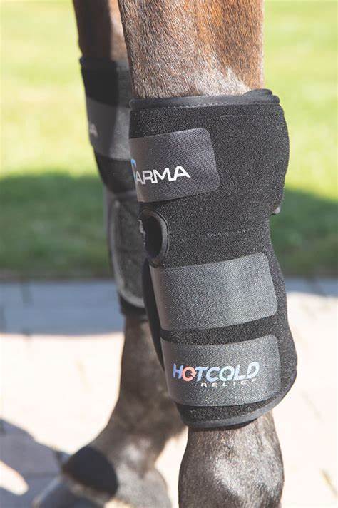 Suitable for knees, hocks, or fetlocks. Specifically shaped to be used on joints as the flexible neoprene and cut outs allow movement. Inner pockets keep gel packs secure.