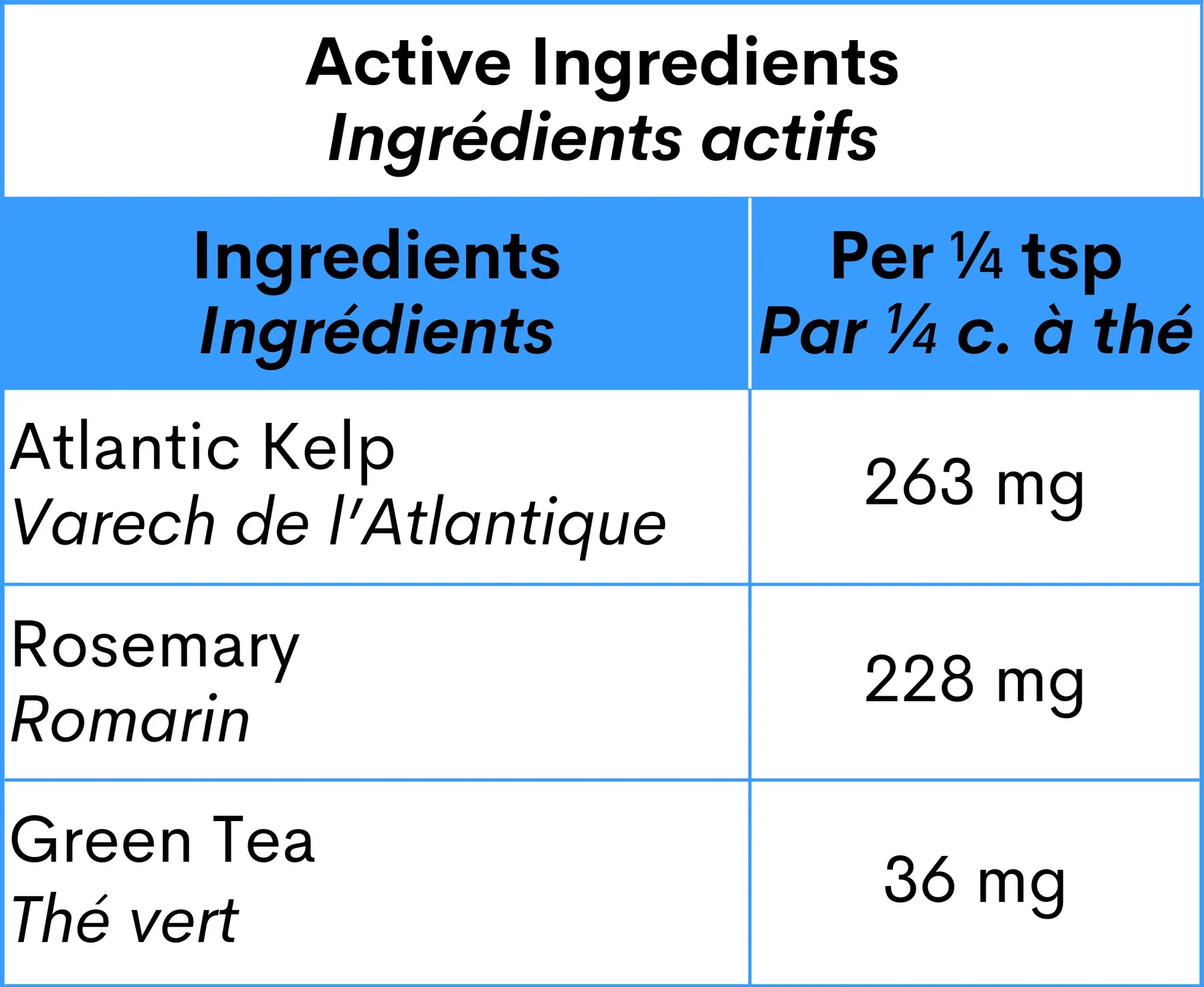 Kelp has been shown in studies to help reduce plaque and tartar on teeth, support gum health, and even freshen breath. Green tea provides natural antioxidants called catechins, which can slow the growth of bacteria that cause plaque, tartar, and bad breath. Rosemary also has natural compounds that help keep harmful bacteria in check, supporting a cleaner, healthier mouth. Added to your pet’s food daily, this blend may help maintain fresher breath, healthier gums, and reduce plaque and tartar buildup.