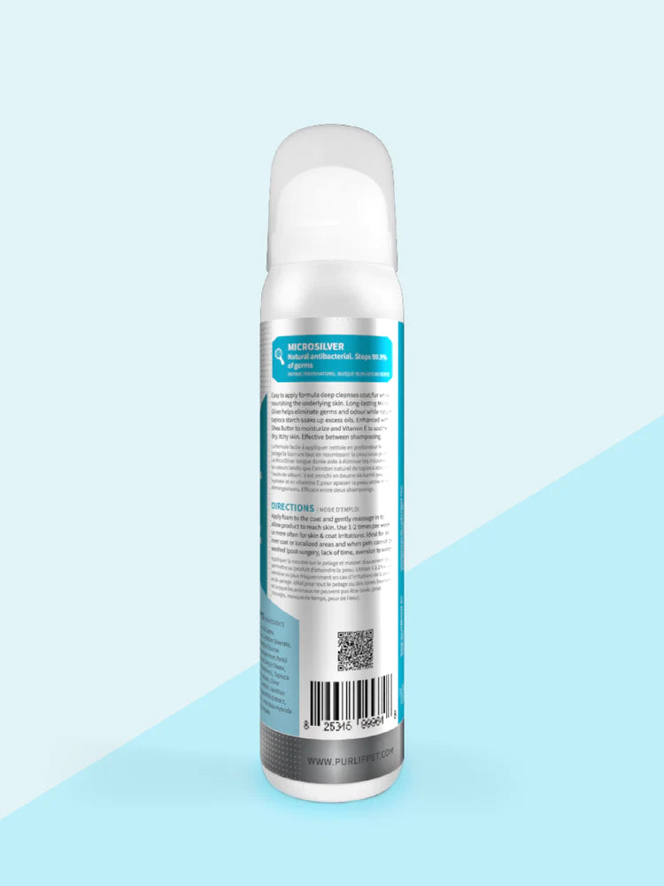 Easy to apply formula deep cleans coat/fur while nourishing the underlying skin. Long-lasting MicroSilver helps eliminate germs and odour while natural tapioca starch soaks up excess oils. Enhanced with Shea Butter to moisturize and Vitamin E to soothe dry, itchy skin. Effective between shampooing.